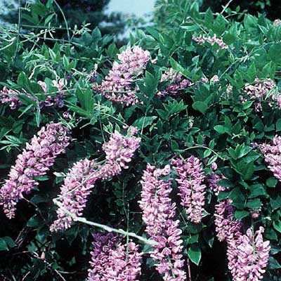 Cette variété fleurit dès la première ou deuxième année. Belle floraison lilas pourpre, légèrement parfumée en bouquets de 20-25 cm (10-12″ ») à la fin mai. Besoin d’un support pour s’enrouler.